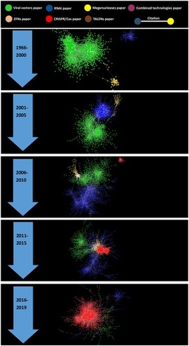 Mapping the coevolution, leadership and financing of research on viral vectors, RNAi, CRISPR/Cas9 and other genomic editing technologies